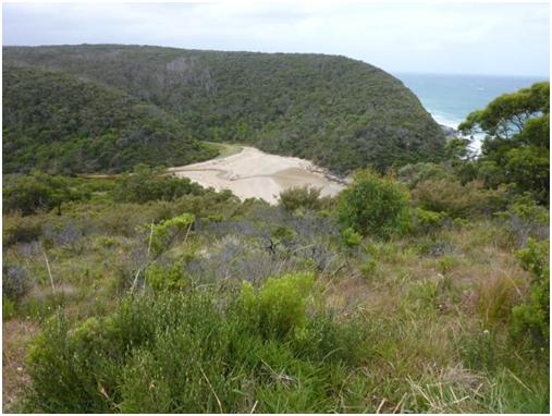 I am no environmental scientist, of course, but my observations were that this was not just a problem on Col’s block. All through the vicinity the Manna Gum stands are under attack. On one excursion to Parker River, we could see tall Manna Gum skeletons standing above the tree canopy (see picture, above and to the left of the beach area). Is this further evidence of koala blight? Driving from Cols block in Otway Park through to Blanket Bay, the picture appeared consistent. These cute, furry little critters were doing a great deal of damage, and in some cases bringing irreversible change to the environment.