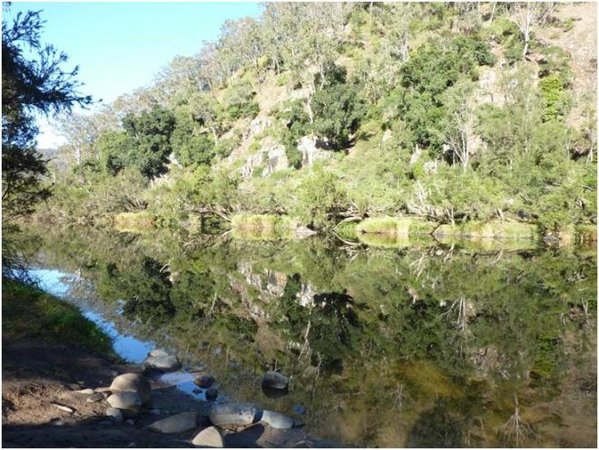Located on the upper reaches of the Clarence River in NSW, this upper Clarence high country hideaway is a great place to unwind. Some will come here to walk, others for off road adventures, others to kayak through the many rapids down the river, and still others just to camp. I come here to replenish the mind. There’s no mobile reception (unless you drive about 4km up the ridge), no email, very little power, and no shops. You need to bring all your food and equipment with you, and be reasonably self sufficient for the duration of your stay. The nearest supplies can be purchased un Urbenville, about 50 mins drive. While access is manageable for a conventional vehicle with reasonable clearance. Our Subaru handles the track with ease. There’s a bit over 30km of unsealed road after the turnoff after crossing Wallaby Creek, so you won’t want to be in a hurry. (pic: view down the gorge to ‘Twin Waters’ taken about 2km form Clarence River Wilderness Lodge)