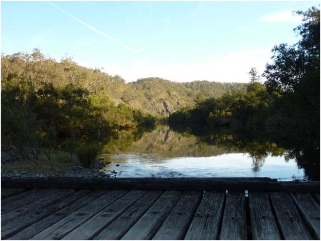 Located on the upper reaches of the Clarence River in NSW, this upper Clarence high country hideaway is a great place to unwind. Some will come here to walk, others for off road adventures, others to kayak through the many rapids down the river, and still others just to camp. I come here to replenish the mind. There’s no mobile reception (unless you drive about 4km up the ridge), no email, very little power, and no shops. You need to bring all your food and equipment with you, and be reasonably self sufficient for the duration of your stay. The nearest supplies can be purchased un Urbenville, about 50 mins drive. While access is manageable for a conventional vehicle with reasonable clearance. Our Subaru handles the track with ease. There’s a bit over 30km of unsealed road after the turnoff after crossing Wallaby Creek, so you won’t want to be in a hurry. (pic: view down the gorge to ‘Twin Waters’ taken about 2km form Clarence River Wilderness Lodge)