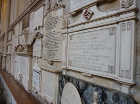 Crypts line the floors while the walls covered with memorials to saints, gentry, and people of note. Sir Isaac Pittman, who invented shorthand notation. Captain Arthur Phillip, leader of the First Fleet, Governor of Australia also features in a memorial.